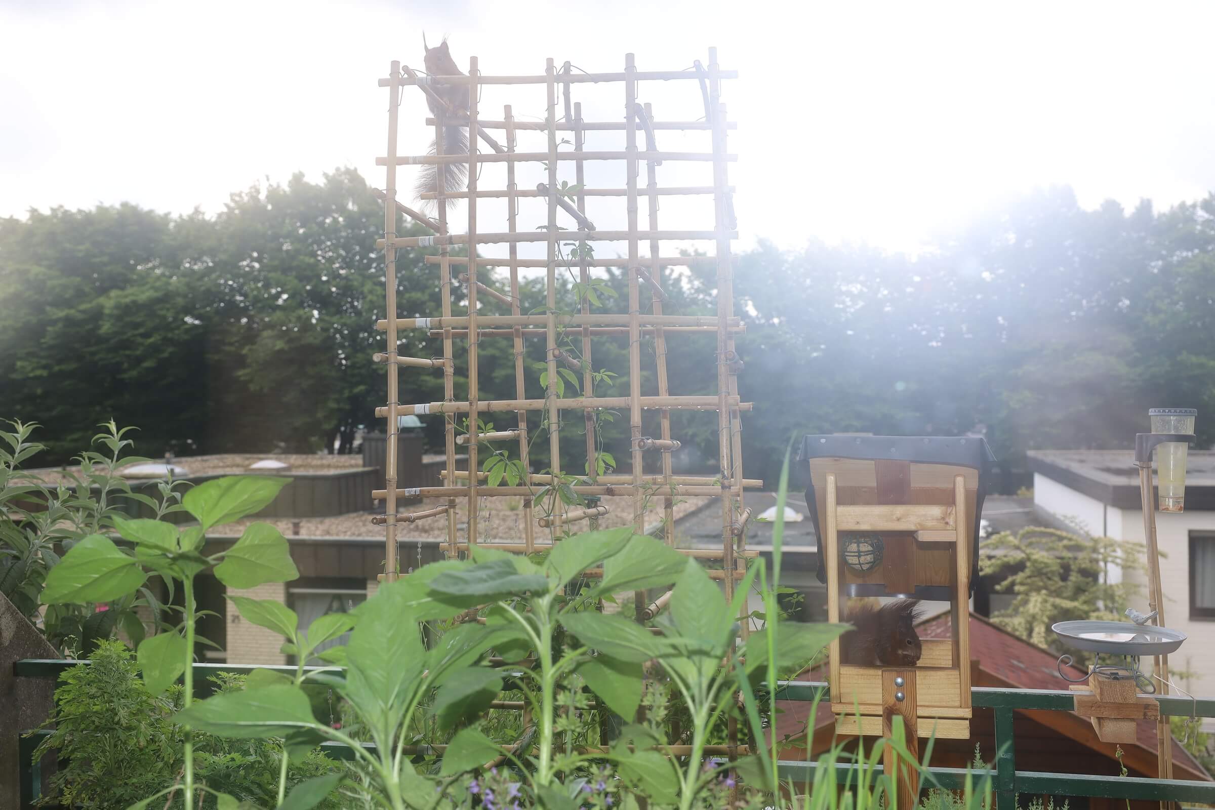 Der Kobel ist ein wertvolles Extra für Eichhörnchen, die Futterstation jedoch der sichere Hafen, um sie in den Garten zu locken. Zu beachten bleibt, dass die Futterstation nicht zur Falle wird und keine anderen Tiere anlockt. Wer beispielsweise seine Wildvögel mit Streufutter auf dem Boden füttert, lockt sich schnell Ratten an.
